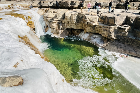 由于气温越来越低,蟒河的河流瀑布逐渐出现了封冻现象