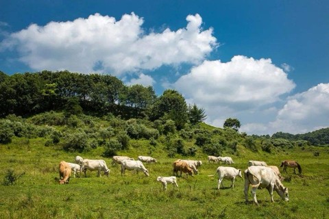 绿草如茵,铺天盖地都是清新的绿,身处其中竟能感受到草原特有的自由。“蓝蓝的天上白云飘,白云下面马儿跑”不管马儿还是牛群,这“与世隔绝”的美丽都足以震撼你。