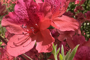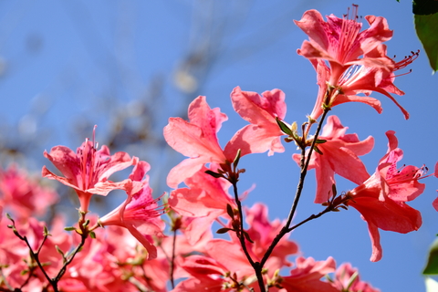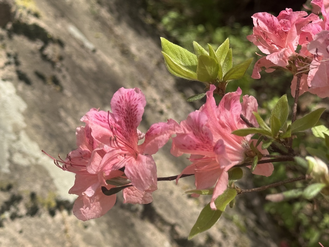杜鹃长廊串联情侣峰、杜鹃岭等核心景致,深红、粉白、鹅黄等20余品类错落交织,灿若朝霞,与奇石峻岭相映成趣。