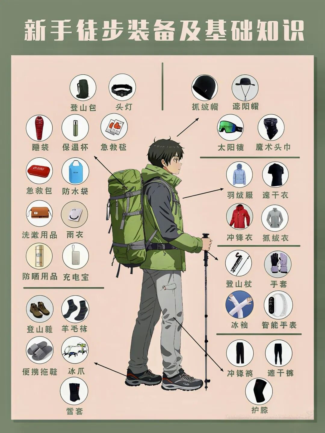 鞋子:登山鞋或防滑运动鞋