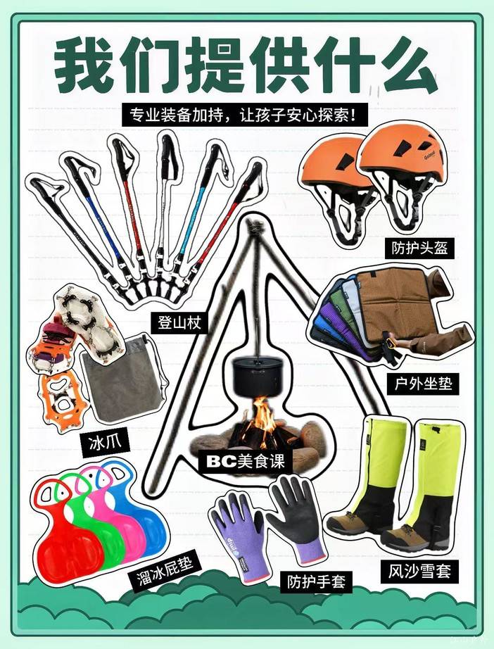(费用包含:交通、课程、教学、午餐、保险、物料、专业领队、自然导师、专业户外装备、公共装备等)