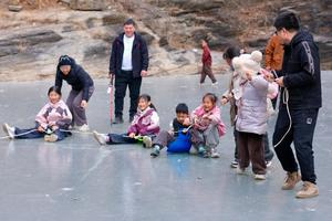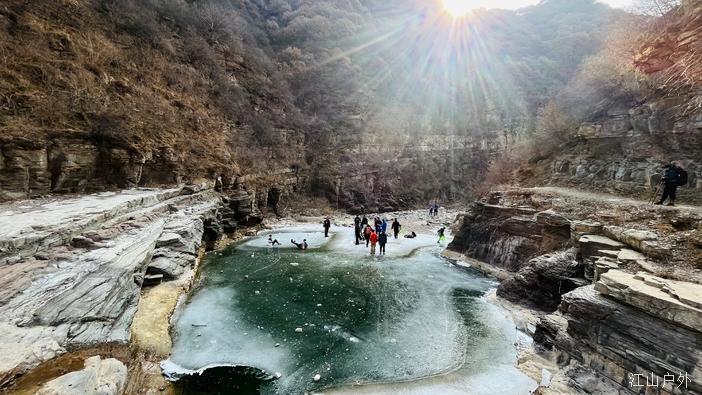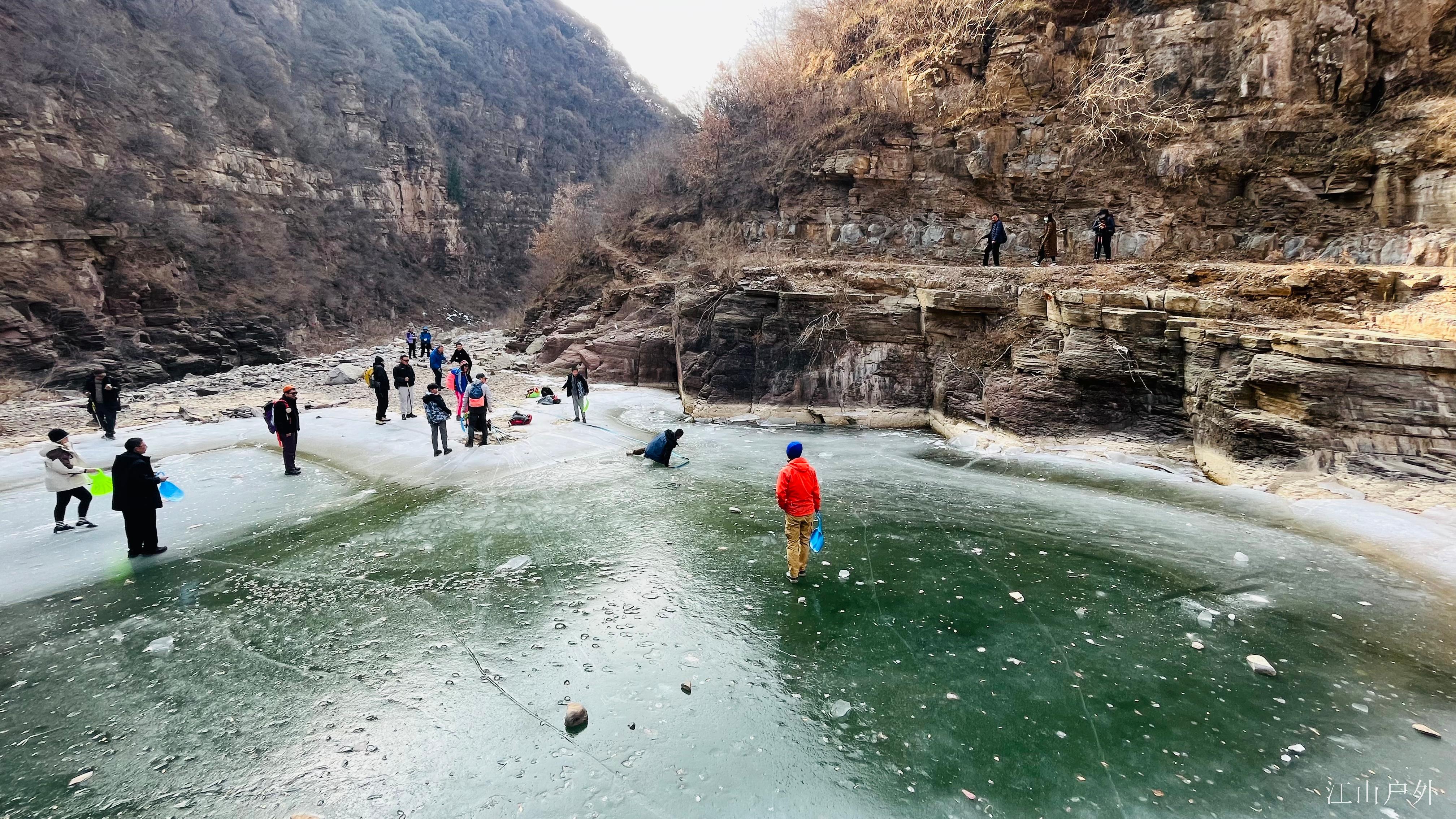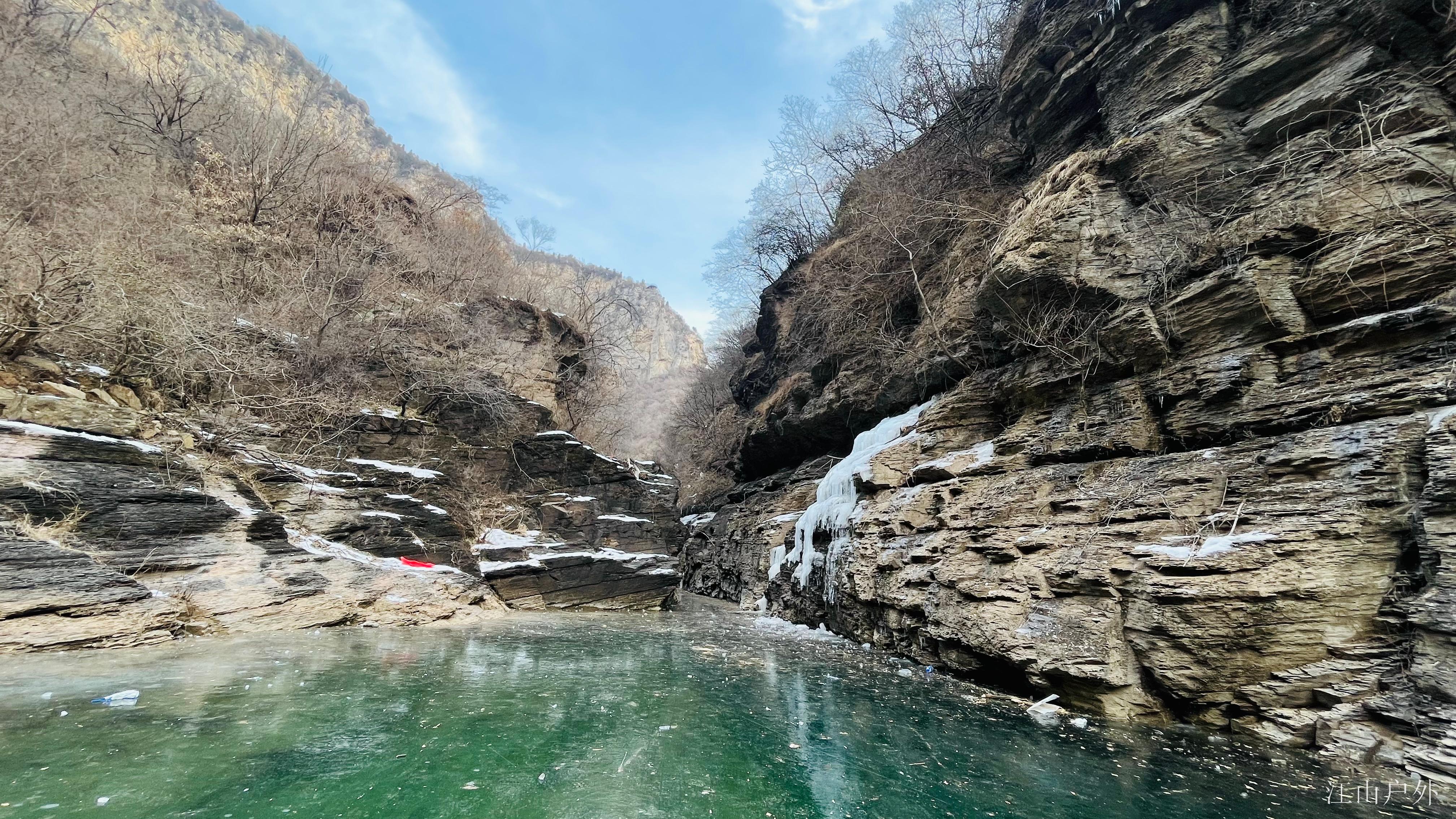 河溪凝结成洁白的“玉带”在山间舞动,更有宽阔的巨型冰瀑高悬在崖壁之上