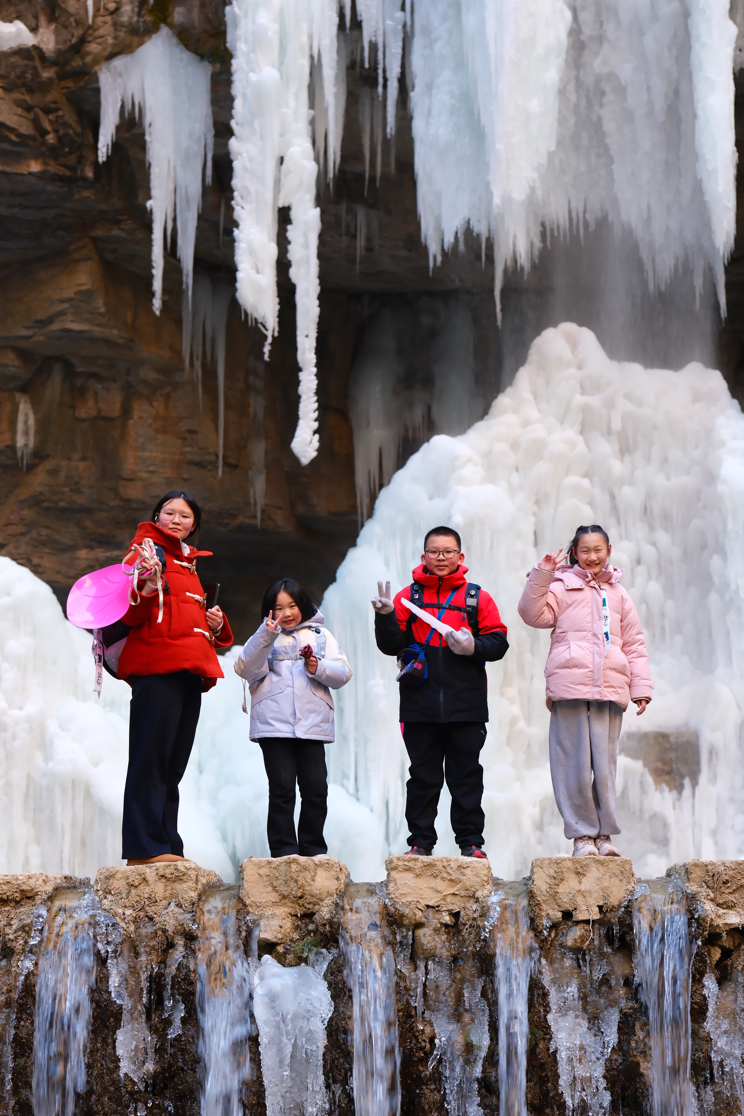 冰封太行,玉柱擎天。阳光穿过冰瀑,把整个峡谷变成流动的水晶宫。