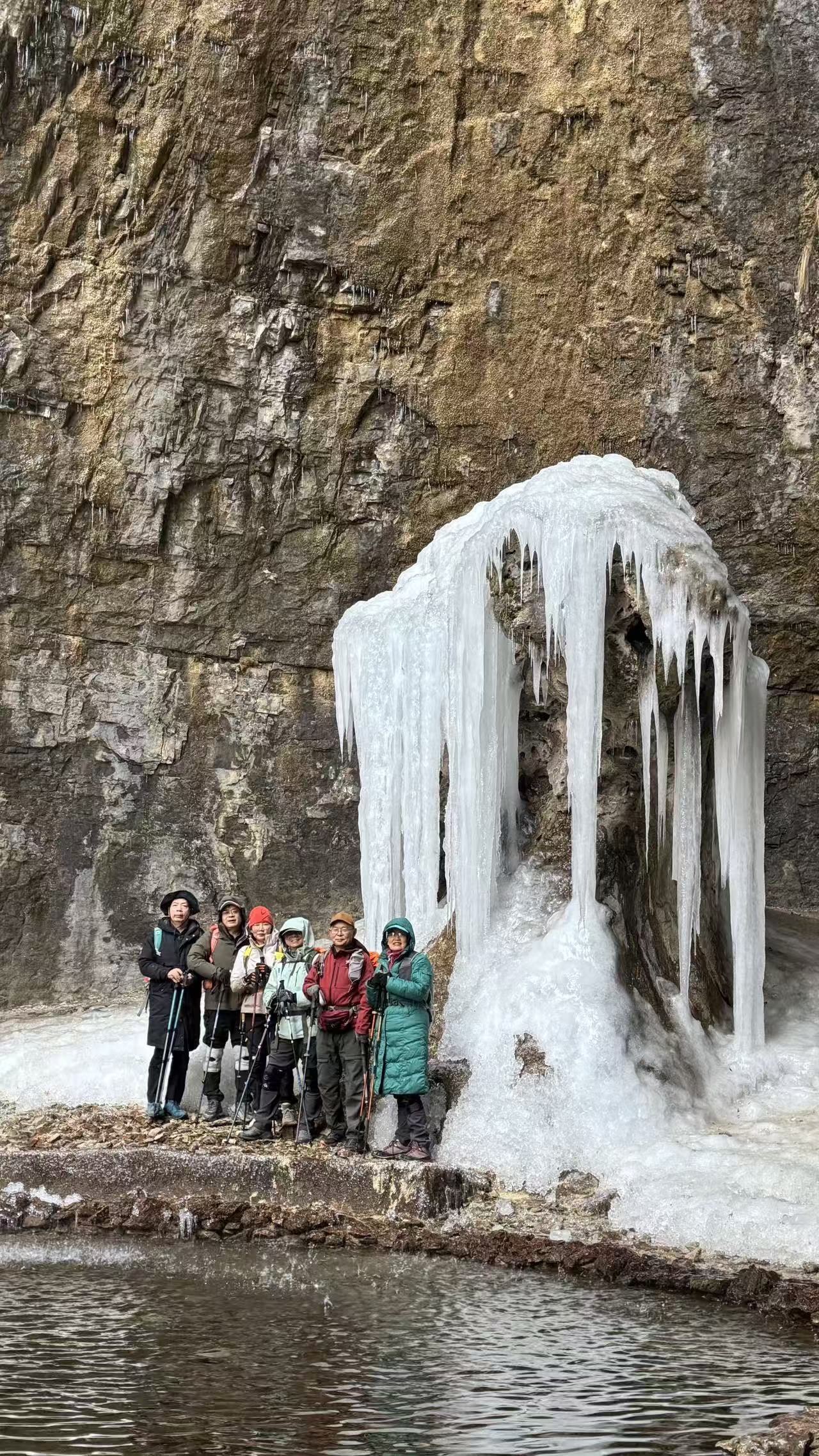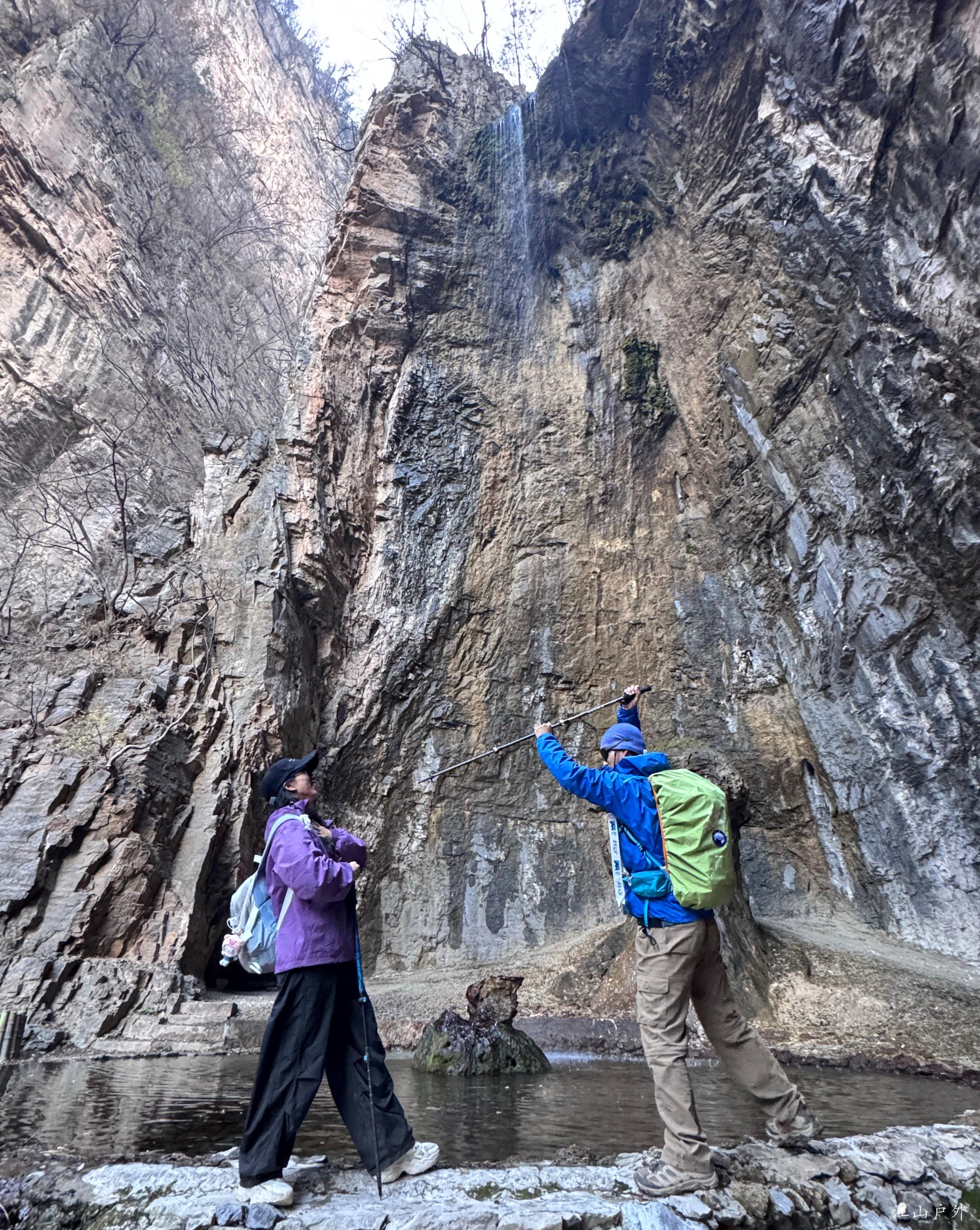 山泉自数十米高的崖壁滴落,经年累月