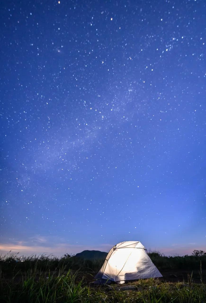 山顶无灯光污染,晴夜可见银河横跨天际。露营草甸,枕着星河入眠,浪漫至极。