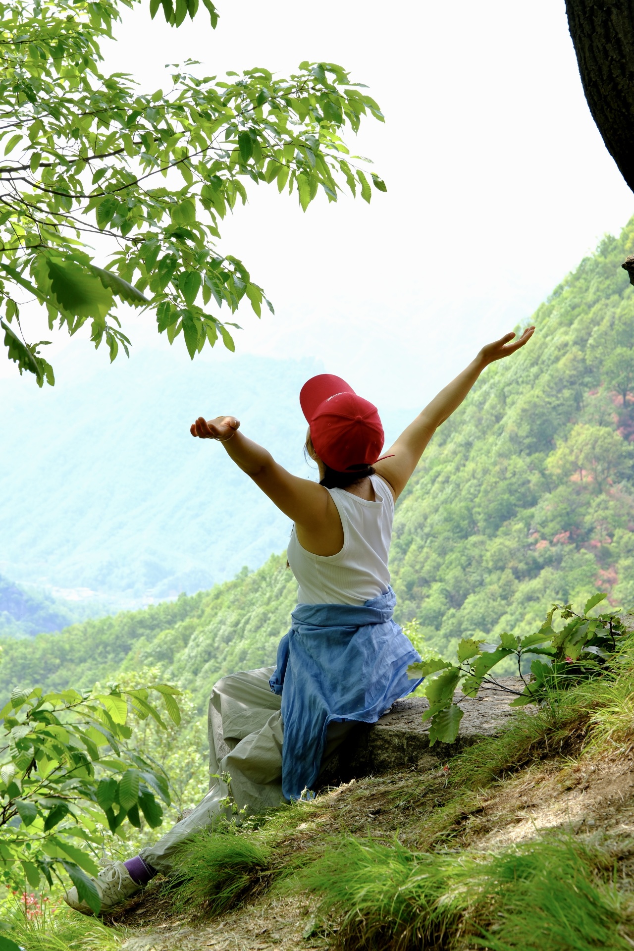 登高望远,沟壑层叠,新绿初染山野,峰峦静立悠远。
